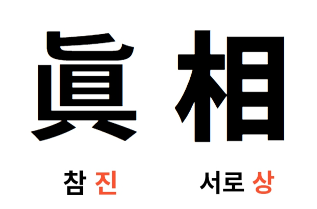 이때 쓰는 진상은 한자로 참진眞 서로相으로 표기합니다.